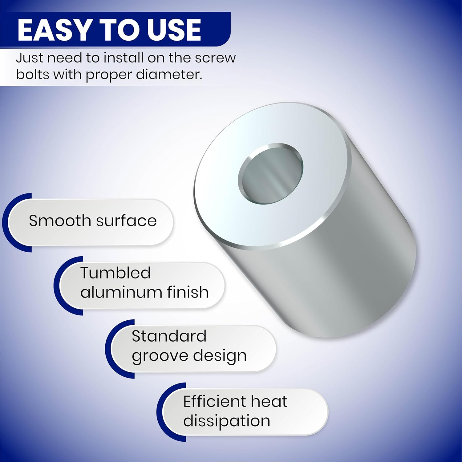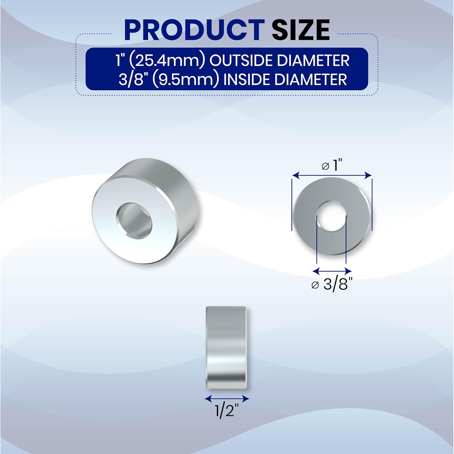 Enhance your projects with this precision-engineered aluminum spacer, crafted for reliability and functionality. Made from T-6061 aluminum, it offers exceptional resistance to corrosion and wear and is suitable for both indoor and outdoor use. With a 1-inch outer diameter and a 3/8-inch inner diameter, this aluminum spacer ensures compatibility with 3/8-inch or M8 screws and bolts, delivering a secure and stable fit. The unthreaded standoff spacer design allows for easy assembly and disassembly, making it perfect for setups that require regular maintenance or adjustments. This aluminum spacer is versatile and adapts to a variety of applications, including automotive components, industrial machinery, electronics, and more. Whether used as a wall plate spacer, tile spacer, curtain spacer, or VESA spacer, it provides precision and stability to any project. Sold in a Pack of 3, this spacer hardware is designed to meet various project requirements, offering durability and strength. Its polished plain finish enhances the overall aesthetic, ensuring a professional result every time. Ideal for bolt spacers, screw spacers, metal spacers, and aluminum spacer kits, this aluminum unthreaded spacer is available in multiple sizes, including spacer 3/8, 1/4 aluminum spacer, aluminum spacer, and 2-inch aluminum spacers, making it a versatile addition to any hardware collection.