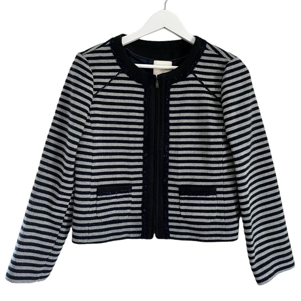 J. Crew Factory suiting wool blend women’s full zip tweed textured jacket in blue, black and grey. Size 4.