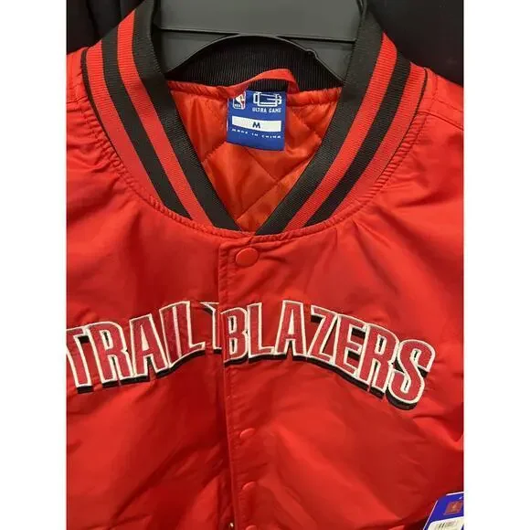 The Men's ULTRA GAME NBA Red Portland Trail Blazers Varsity Jacket is an officially licensed NBA apparel featuring the Portland Trail Blazers team. This jacket is designed for men in size M with a vibrant red color and made of 100% polyester. Ideal for basketball fans, this varsity jacket is suitable for the regular season or the playoffs and showcases support for the National Basketball Association. The jacket is a stylish way for fans to represent their favorite team, the Portland Trail Blazers, while staying comfortable and showing team spirit.