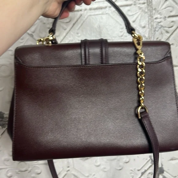 Elevate your style with this elegant Michael Kors handbag. Crafted in rich purple leather, it features a sleek design perfect for any occasion. The gold-tone chain adds a touch of luxury.100 percent authentic, bought from Michael Kors store. Has some small marks as shown. No refunds. View pictures carefully. All purses are being video-ed while I package.