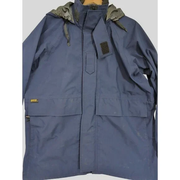 Style profile: military, navy, coast guard, outdoor, chore, gorpcoreFeatures:Double full zip closure plus hook/loop closureAttached hood with brim & drawstringAdjustable cuffs to keep elements out2 large pocketsWear alone or layer with warmer pieces underneath in colder weatherSolidMachine washableMade in USAPlease see photos for measurements Size: Mens SCondition: Pre-OwnedSome light spotting on front (see photo 3); otherwise very good condition. Item pictured is item you will receive.From a smoke/pet free home.Any model photos are not of actual item but are to show style/fit. All other photos are of actual item you will receive. New to ? Use code THREADEDPIECES for the invite code and sign up to save $10 on your first order.Bundle 2 or more items from my closet for a discount and to save on shipping. Message me if you need help with this.