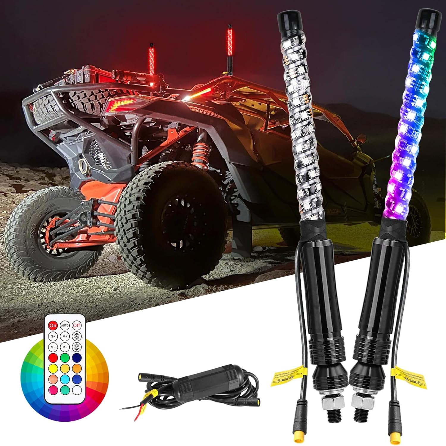 | Included Components | 2x RGBW LED Whip Lights Whipless Pods, Long enough controller harness kit, Remote control with dust cover, Rocker switch with wiring, U-shape mounting bracket |